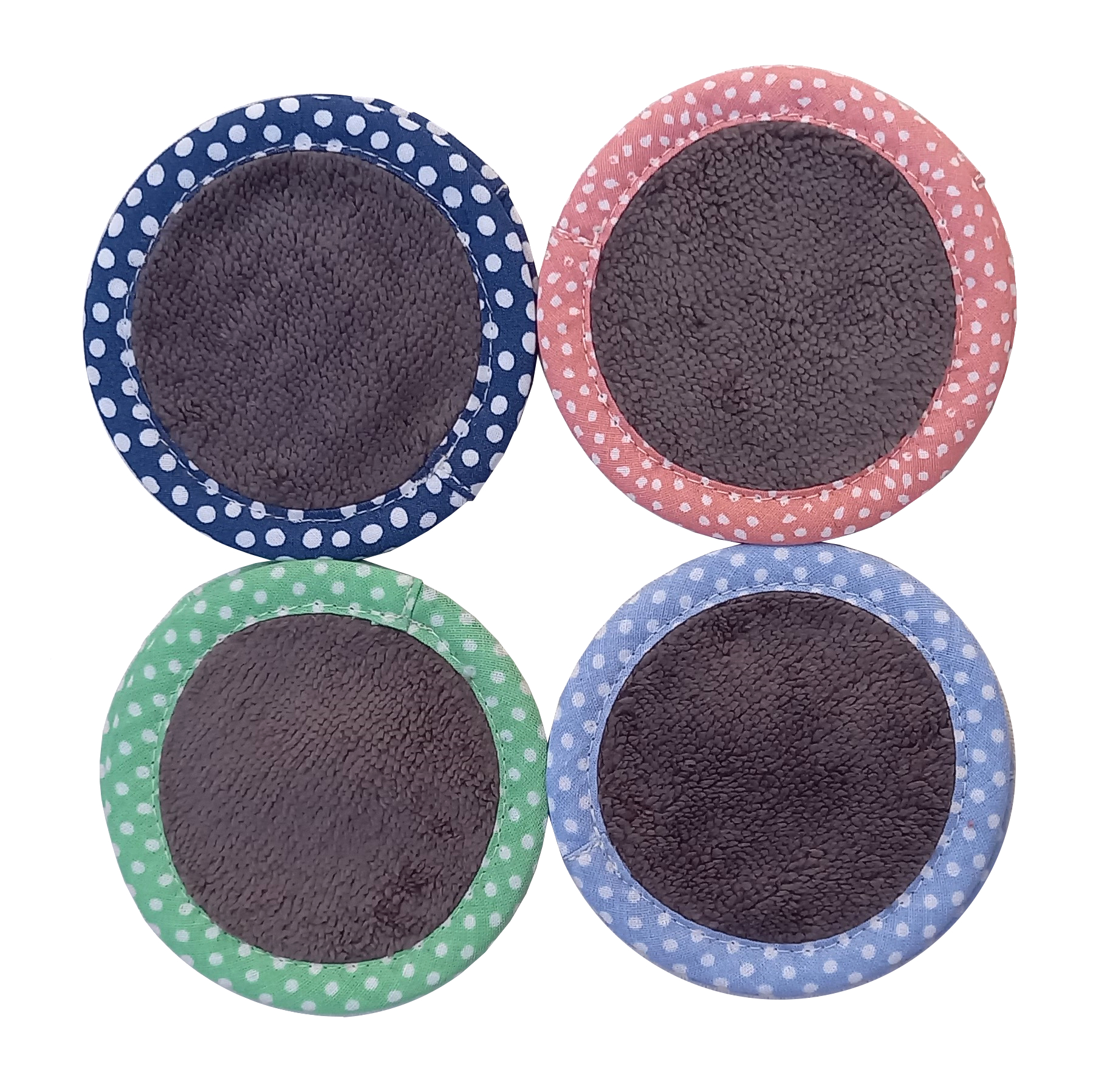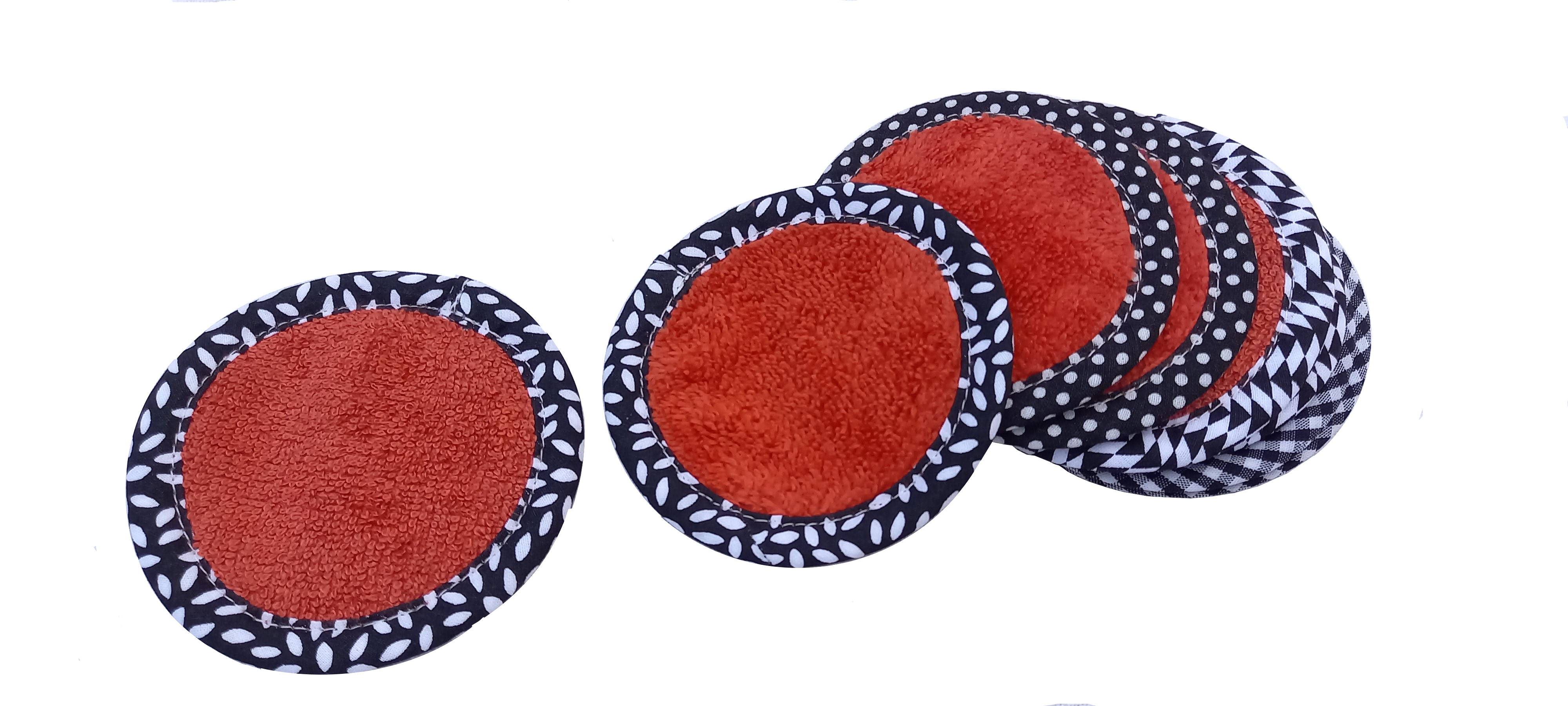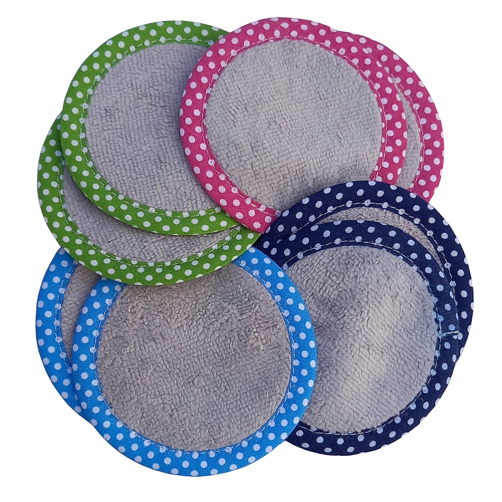 Disques démaquillants lavables et très doux en bambou oeko tex. Terminés par un biais, double-face : un côté bouclette et l’autre velours.